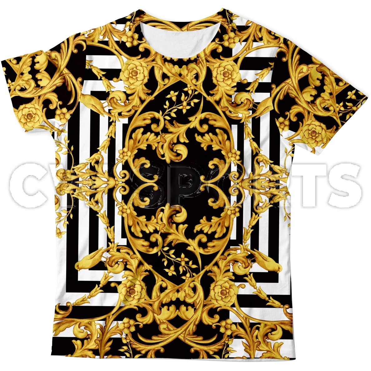 Step out of your everyday look and become unique in the Kudos T-Shirt. Featuring a custom-made design, crafted from 100% polyester. Our resident artist made this black&white striped design with gold flowers and leaves for an elegant touch
