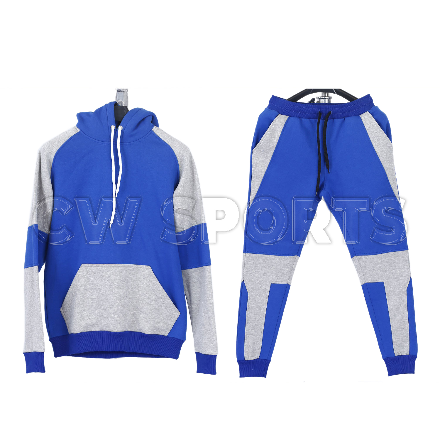 New Men Multi Color Patchwork Panel Design Hooded Tracksuits