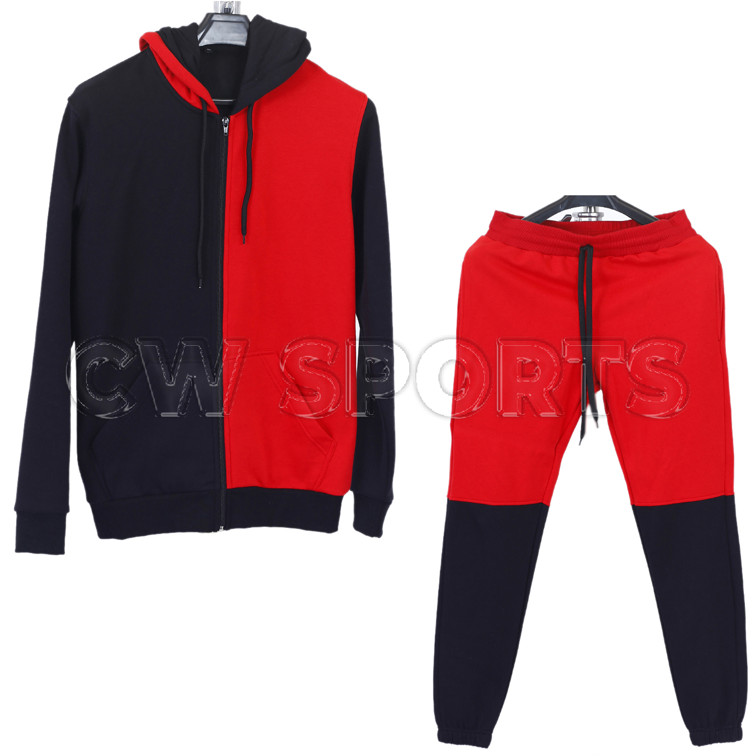 Black and Red Colorblocked Custom Tracksuits