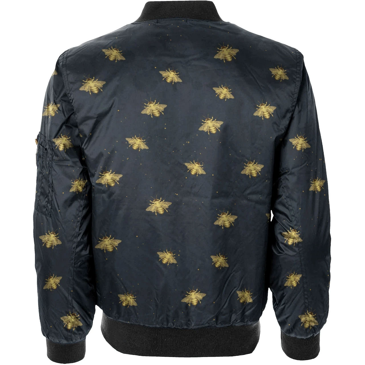 Light up your collection and add some magical style to your look with the Golden Bee Bomber Jacket, handcrafted for fully aligned edge-to-edge graphics. The fascinating night scene with flashy, gold bees and sunflower graphics was created by our team of resident artists.
