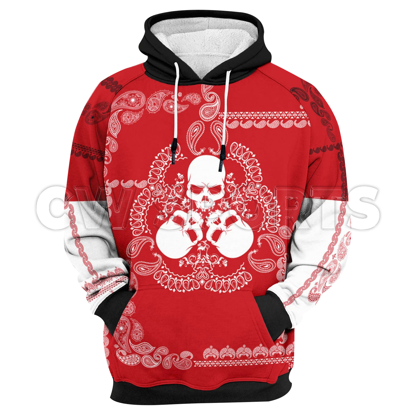 Boost your collection in a sinister style with the Fully Red Hoodie, featuring a custom-made design, crafted from 100% premium polyester. This bold red colorway with creepy skull head graphics was created by our team of talented artists.
