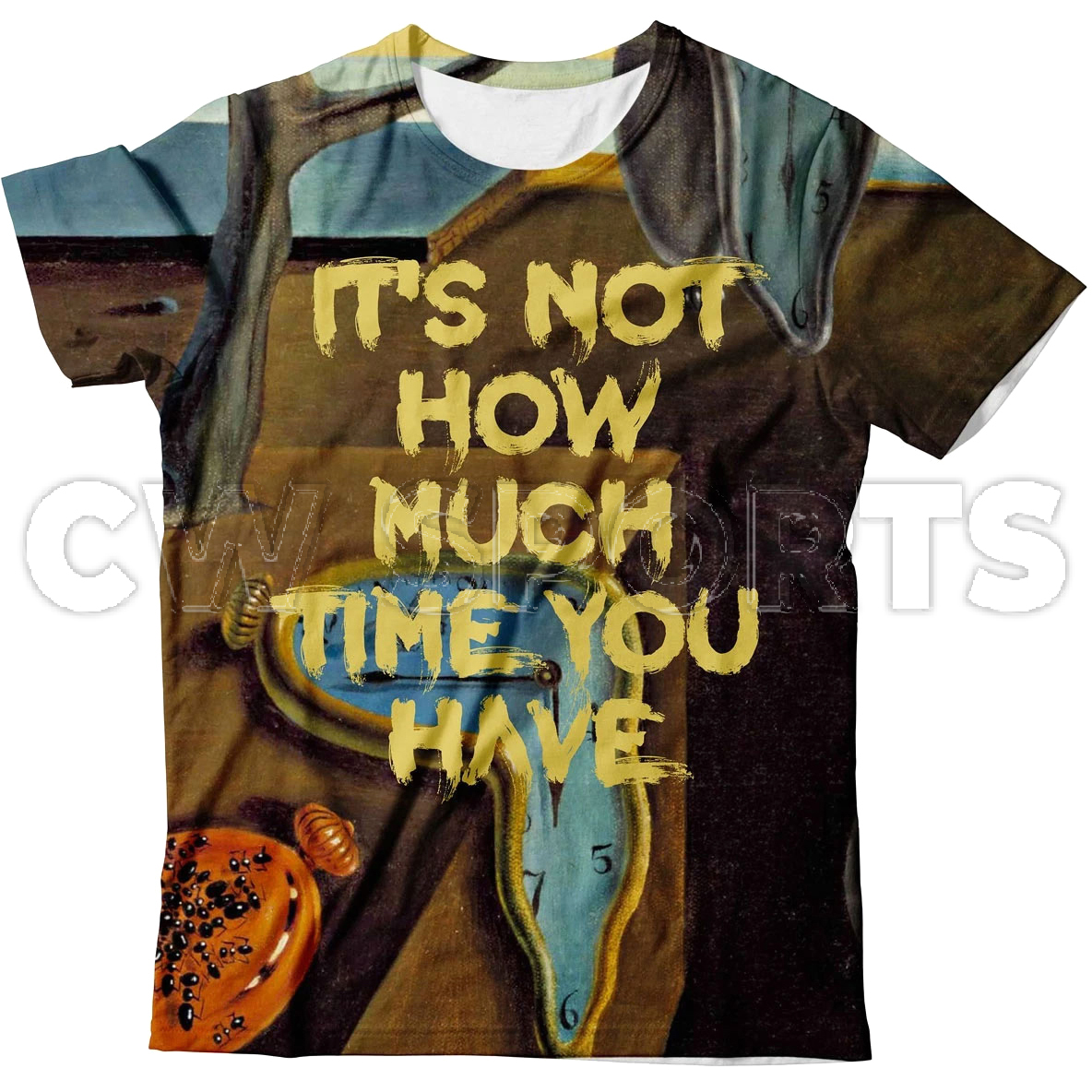 Add some serious vibrance to your style with the Memory T-Shirt, featuring custom made design, crafted from 100% polyester. Our team of resident artists created this melting clock art design with an inspiring message.